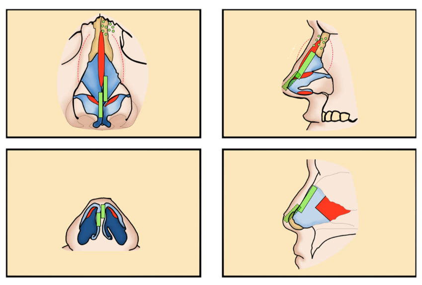 截骨術通常以開放式切口進行(鼻小柱做一個小切口),醫師視野比較好,可以同時評估整個鼻部結構。手術時間約90分鐘,採局部麻醉加睡眠麻醉,手術當天可以出院,不需住院。